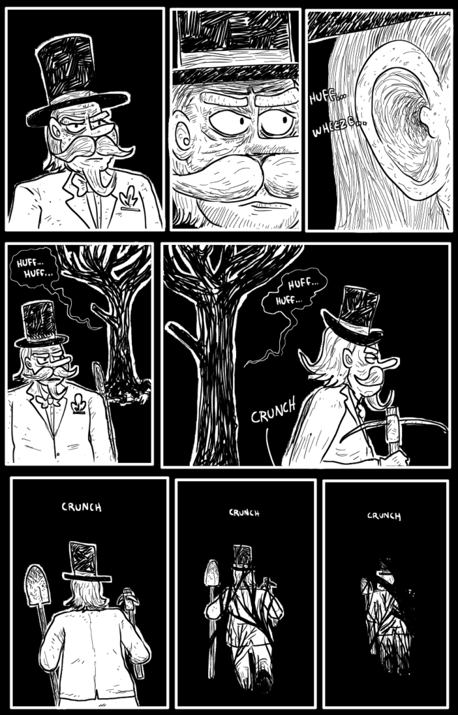 is depicted in a series of panels. At first furious, then determined. Eventually, he smiles.