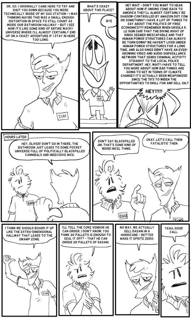 Hey what’s up gang! I’m still working hard on other creative stuff, but I just… got the itch to do some OCL. Will I do requests again? Maybe! I want to take some prompts from the wider world for a bit, it’s just for fun. I still think fondly of you people. Coldfusion, dog, Beaver 2, Dr. Nim’s real ghost, Vincent, thedude3445, Delicious Michigan Cherries straight from Cherryrepublicdotcom, really anyone who ever took the time to comment.