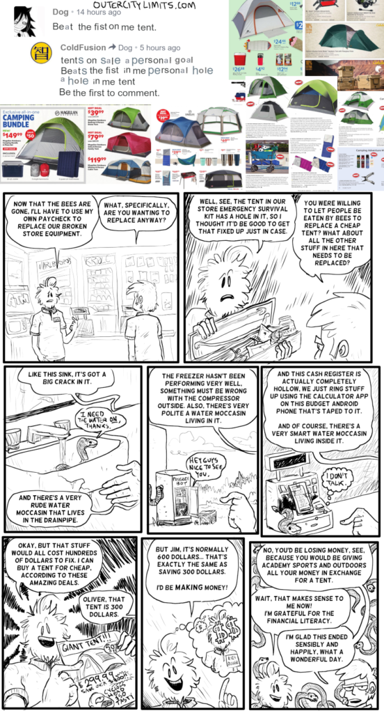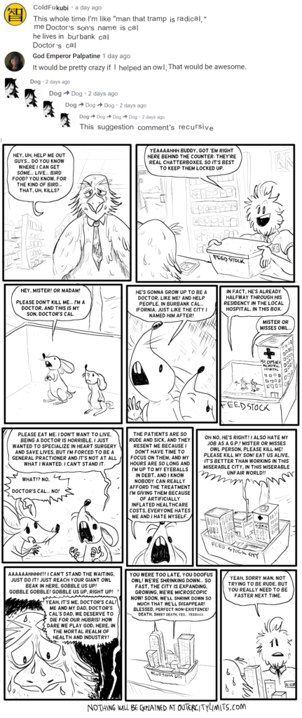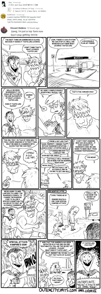 Just doing some short filler comics to put something up because the video project is taking way longer than it should. Looked at this comic again later and felt like it was just way too dark. Brightened up the colors a bit.