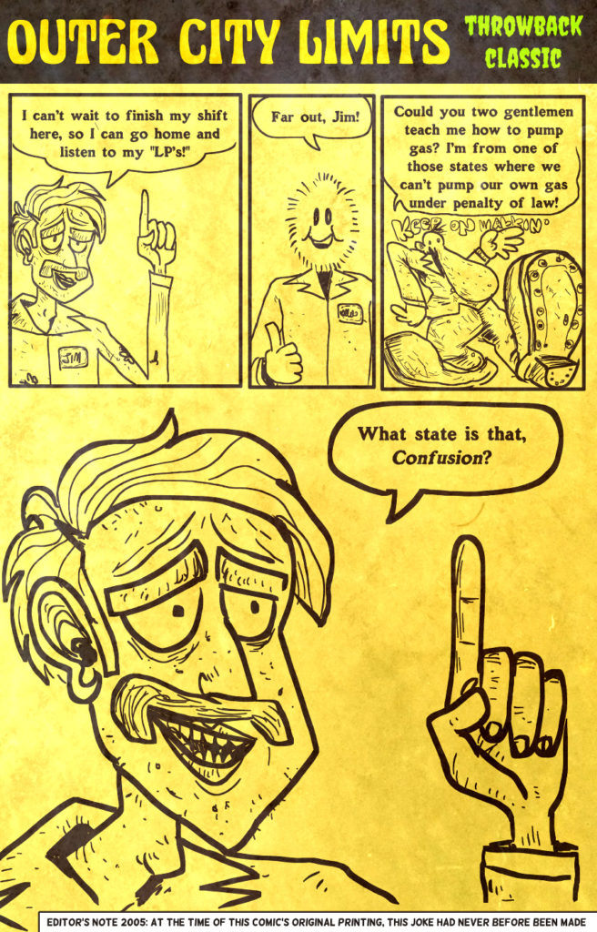 Free Funny Cartoon Gas Station Internet-Accessible Web Comic outercitylimits.com Black and White Media Fictional English Language Free For January 7, 2018