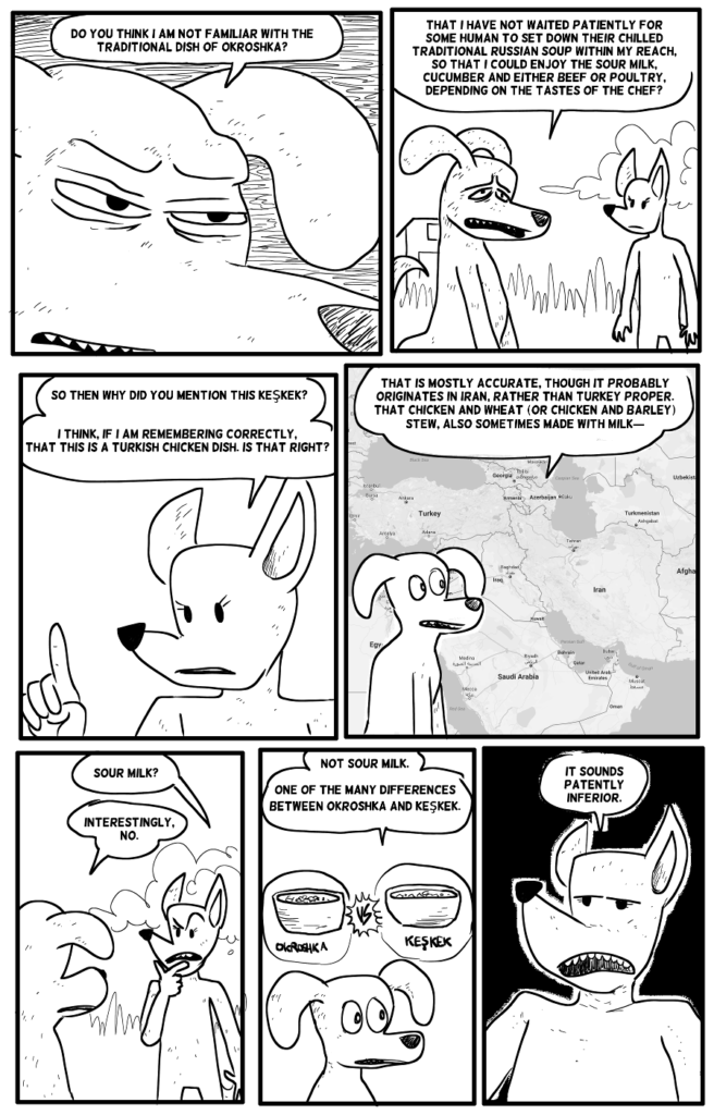 Squeezer: Surely you meant to say okroshka, being, as we are, Russian hounds.