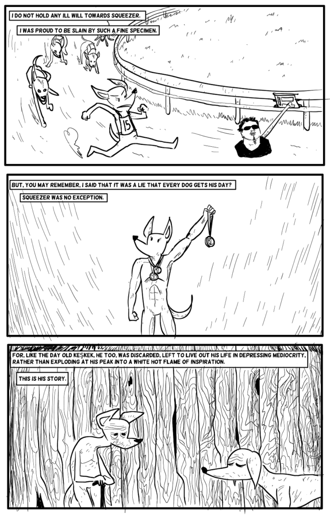 Squeezer: I am telling you, Scruff, one day, I am going to race. And when I do, even the alphas will