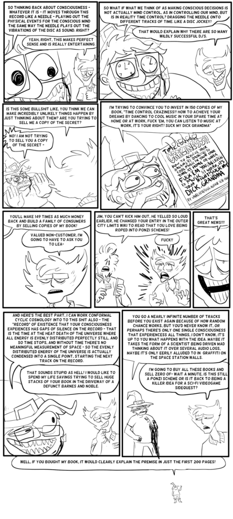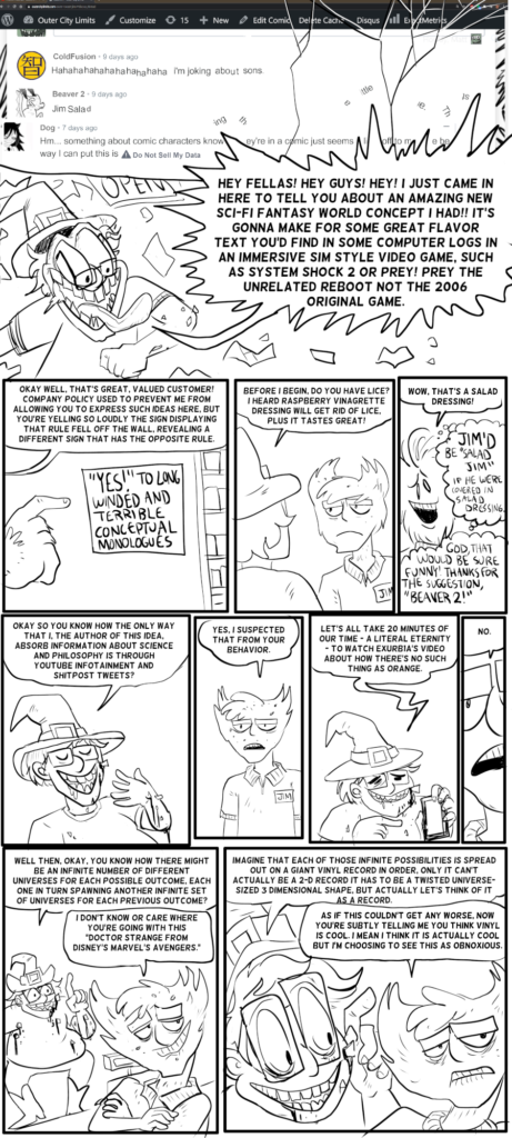 Hello, check out my new comic wisecomic.com if you wish! It’s got a gimmick in that it’s made of animated gifs, and is not really about a gas station! Sorry to disappoint the gas station fans, but that’s just how it is for me these days. There are no comments! It’s fundamentally just a different kind of beast to OCL.